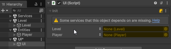 If the client is loaded before the Object that it needs, the client will automatically be disabled and its initialization delayed, until the moment that the referenced Object becomes available (see MonoBehaviour<T>’s Asynchronous Initialization section for more details).