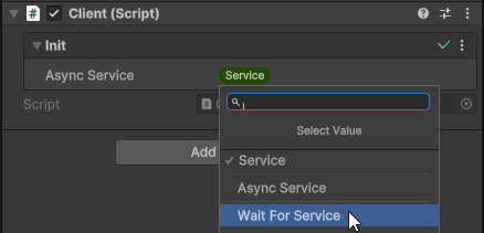 2. Pick ‘Wait For Service’ from the Init argument’s context menu.